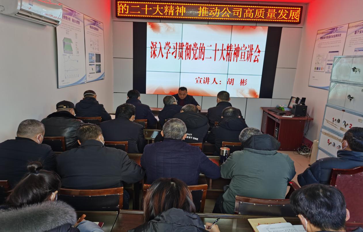 12月27日,市產(chǎn)業(yè)集團(tuán)公司黨委專職副書記、工會(huì)主席胡彬到糧儲(chǔ)公司宣講黨的二十大精神。